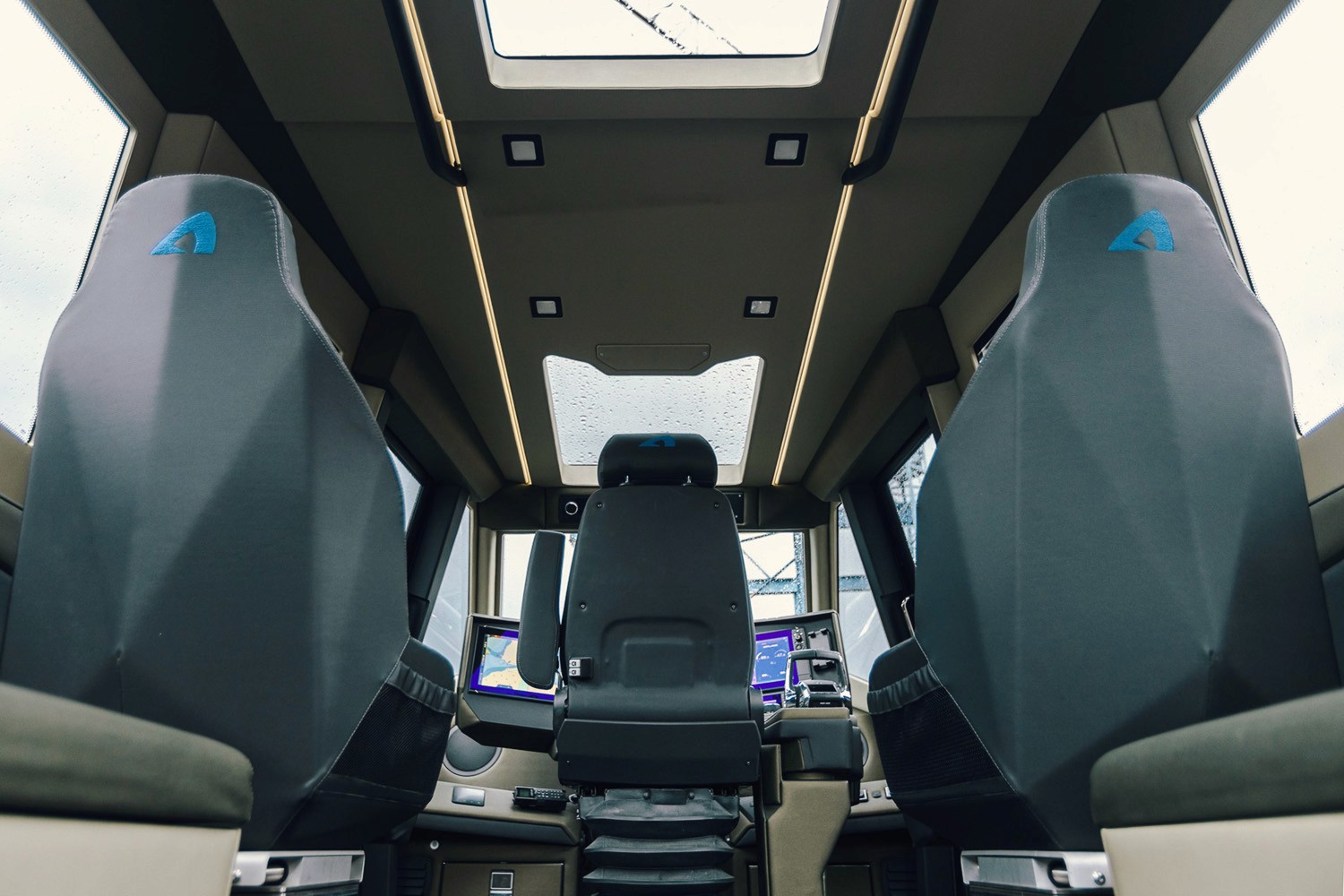 The Anytec A33C boasts a seamless transition between its exterior and interior that enhances the overall aesthetic and functionality of the vessel. The interior flow is designed for commuting and enjoying time outdoors on the comfortable aft deck seating. Suspension seating for the crew makes long-distance commuting comfortable.